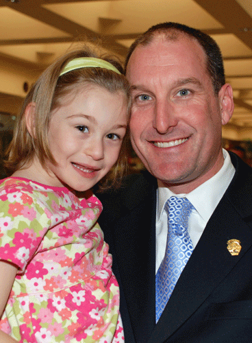 Honoree at Bliss Unlimited grand reopening, Assistant City Manager Mike Flad with his daughter, Bella, enjoying the evening at Bliss Unlimited.